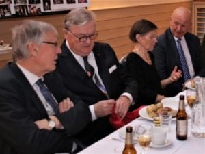 Etter hovedretten, en ekte norsk juletallerken, fikk tidligere ambassadør Peter Stenlund ordet. Han minnet årene i Norge med glede og fremhevet også det gode samarbeidet med Norsk-Finsk Handelsforening.
