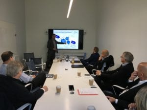 Vi møtte representantene Harri Lanning fra FINPRO Finland og Jukka Salo fra Team Finland Services om morgenen. I deres hovedkvarter fikk vi en orientering om hvordan Team Finland og FINPRO er organisert og hvordan organisasjonen jobber i det daglige for å etablere nettverk, hvordan identifisere muligheter i markedet og legge til rette for bedrifter som skal inn i det finske markedet.
